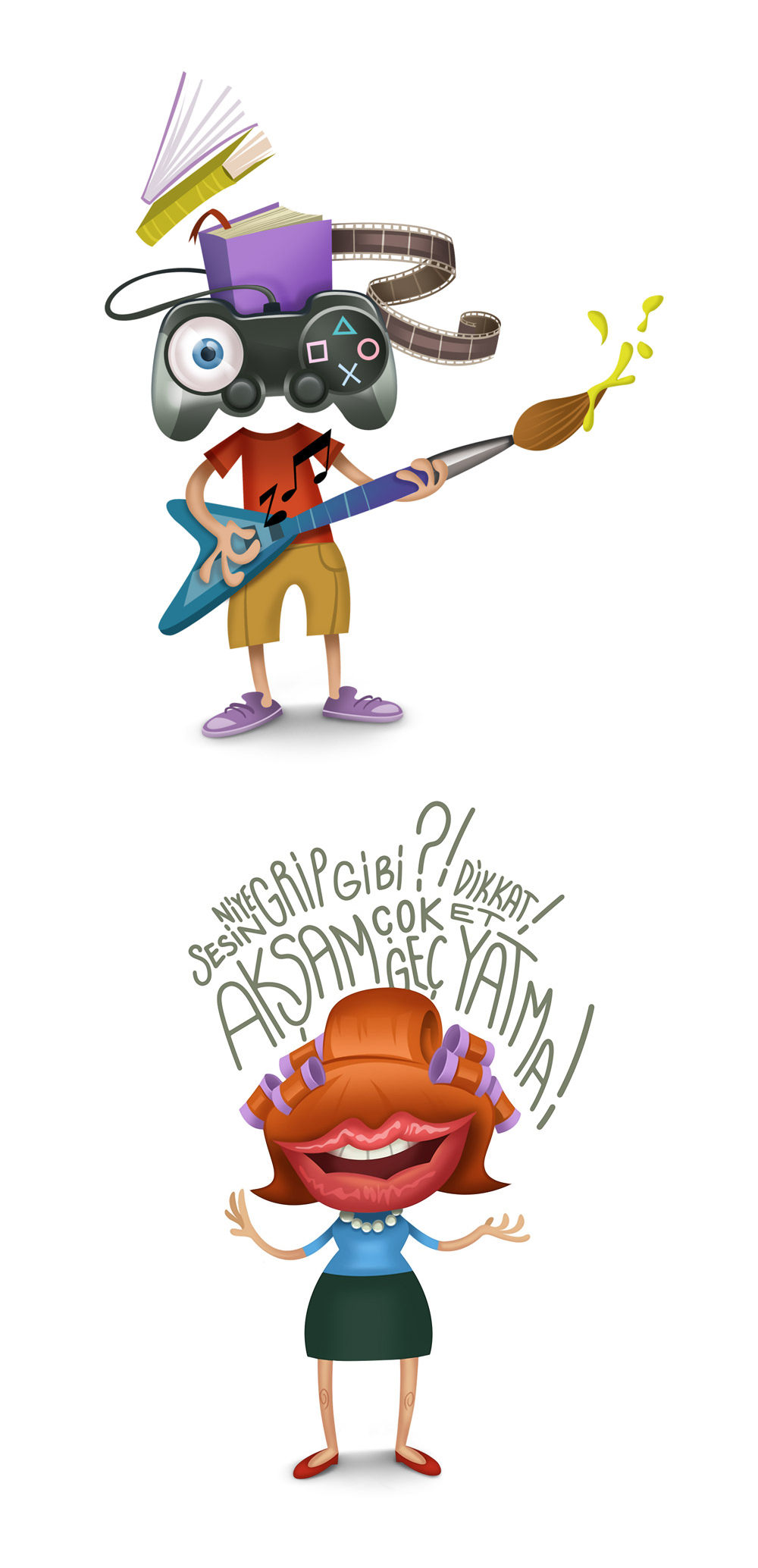 Character designs for Sanofi-Enterogermina, Adventures of Captain Ege, D&R Music and Bookstore, Novartis, Sandoz.